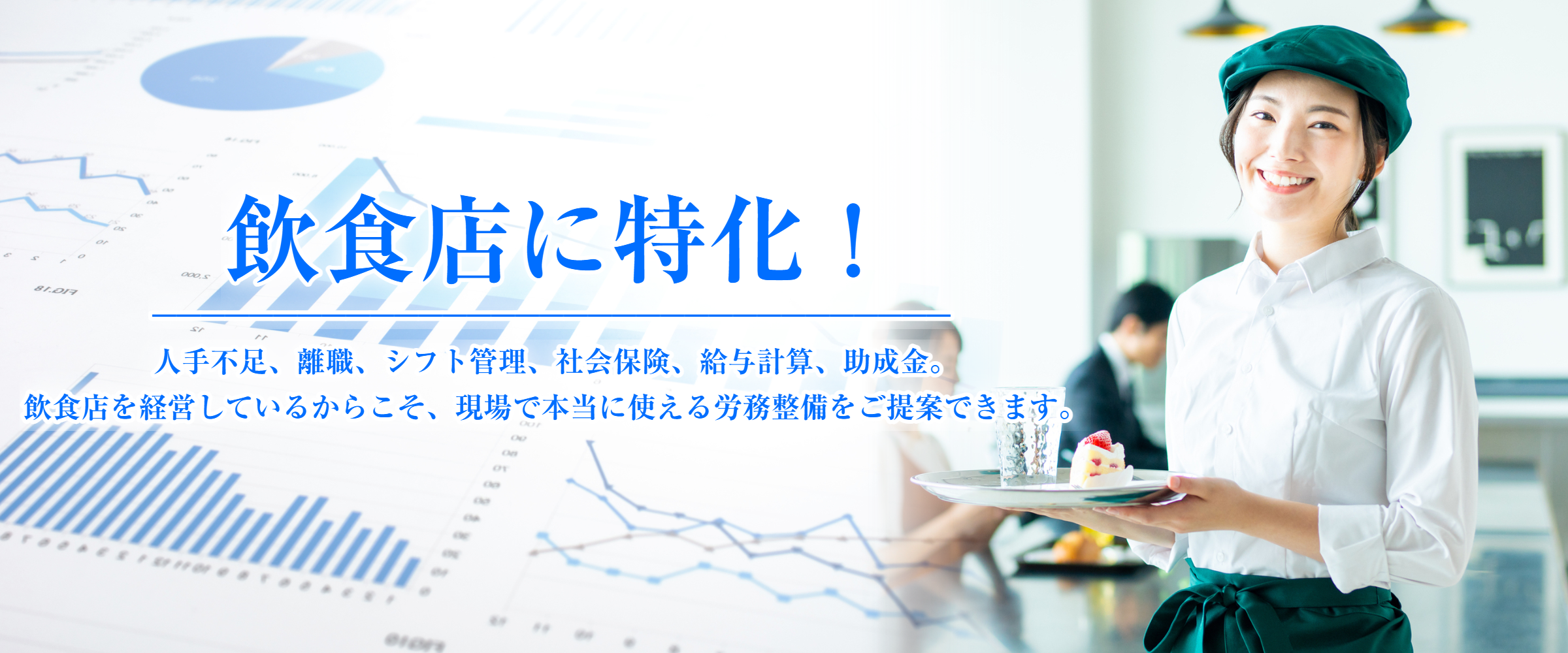 当事務所では、飲食店経営者でもある社労士が経営者さまのお悩みを丁寧にお伺いし、具体的な改善策をご提案いたします。